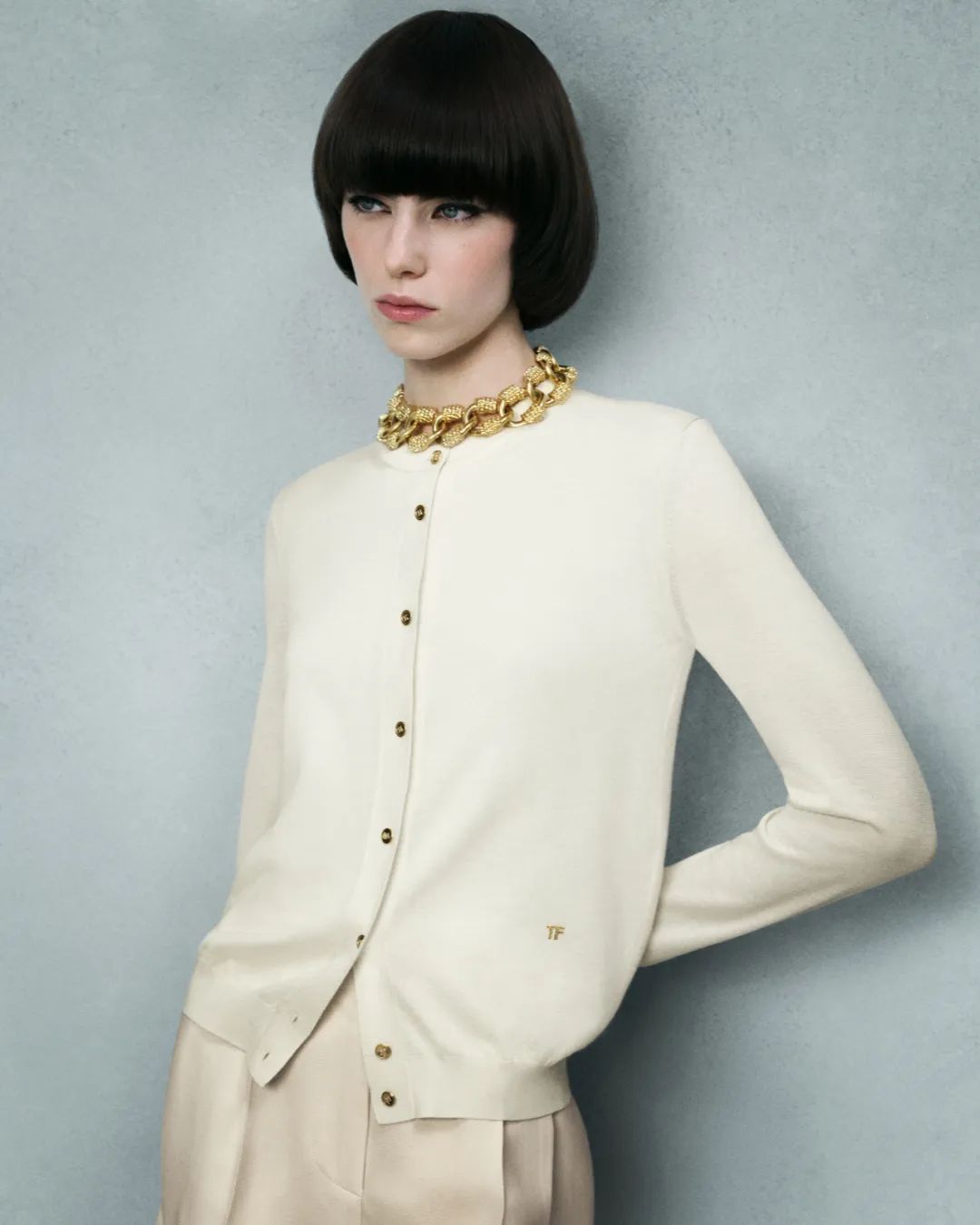 TOM FORD发布中国新年限定系列以摩登格调点亮美好新岁。永不过时的男士Polo衫,点缀珍珠母贝纽扣,尽显沉稳内敛的绅士风范。随性简约的女士针织背心搭配开衫外套,瞩目金属纽扣演绎女性优雅魅力。男女两款单品均以象牙白为主色调,标志性金色TOM FORD刺绣LOGO,为整体设计增添了一抹高贵气息。采用羊绒、丝绸等精致面料,尽展非凡质感与匠心工艺。