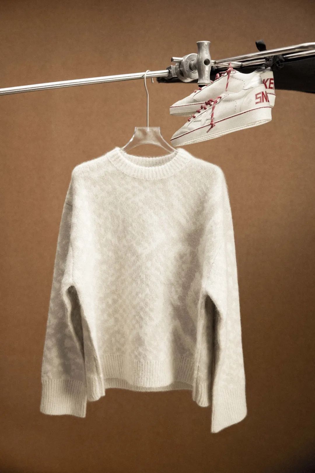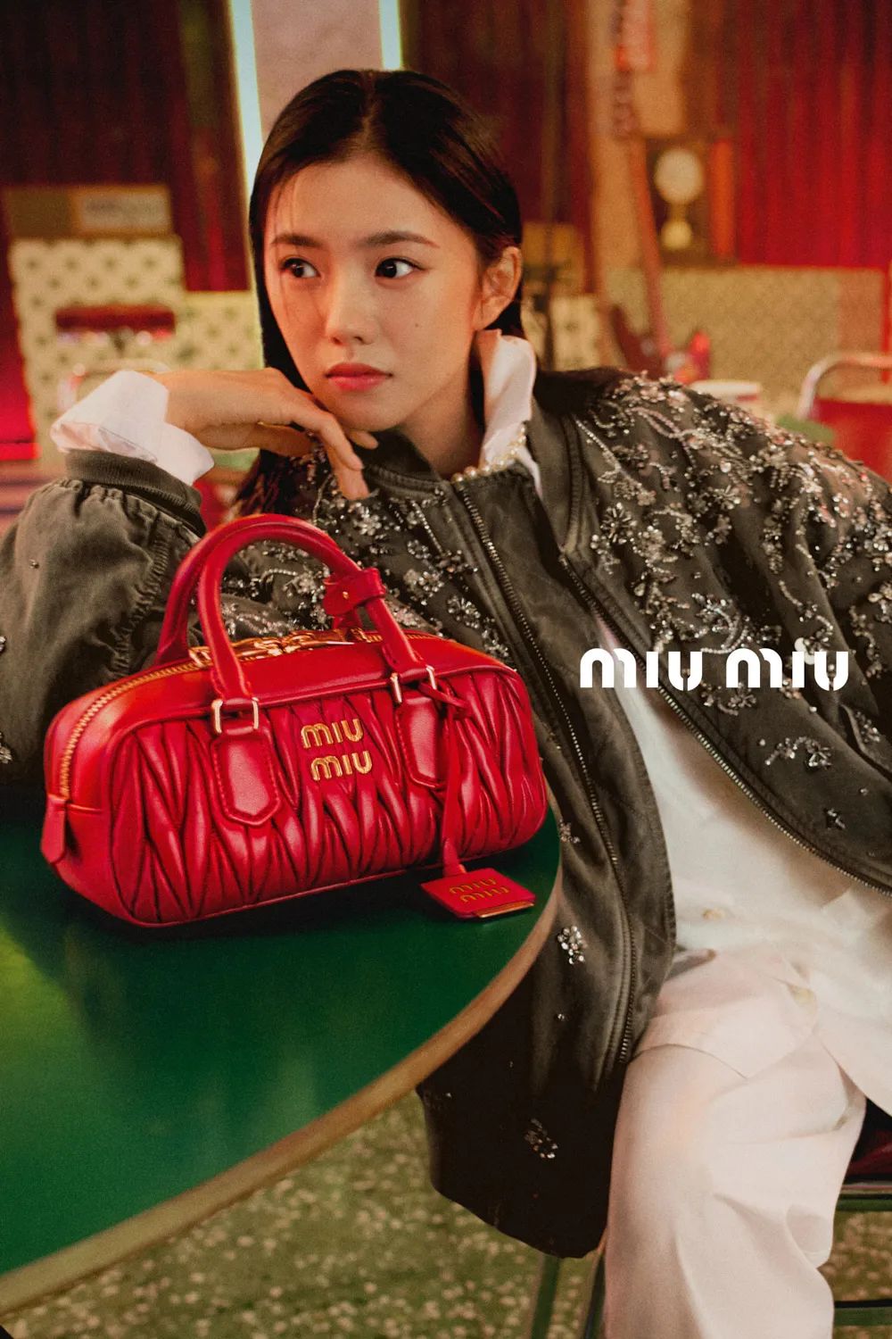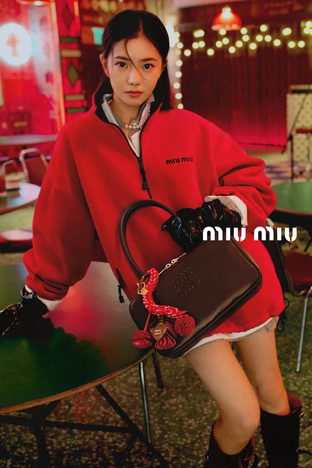 此系列捕捉独属节日的欢快与乐观。宽松毛衣、束腰夹克、学院风花呢与格纹装、镶宝石牛仔装、复古皮革与棉质府绸衬衫和短裤悉数登场,搭配标志性芭蕾平底鞋、乐福鞋、系带猫跟鞋、Plume运动鞋、New Balance X Miu Miu运动鞋、华丽歌剧手套与精致珍珠项链。Penny、Wander与Arcadie手袋以节日专属设计亮相,成为视觉焦点,伴以棒球帽、玫瑰色眼镜与顽趣手袋挂饰,如钩编蛇形装饰以及部分门店限定版个人定制中国结。幸运红色正面拉链式徽标连帽衫、T恤和棉质内衣亦为此节庆时刻注入欢乐气氛。
