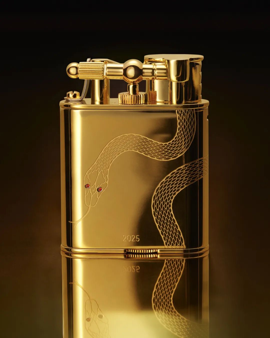 dunhill 2025蛇年新春限定系列以标志性Rollagas和经典款Turbo打火机,从档案馆20世纪70年代打火机款式汲取灵感,通过3D建模打印技术制作蛇首雕塑,再置于Rollagas打火机机身顶端作为装饰,耀眼夺目。打火机设计经深思熟虑,遵循传统风水原理,蛇首位置靠近喷火口温度最为集中的地方,寓意乙巳蛇年、火运丰亨。
