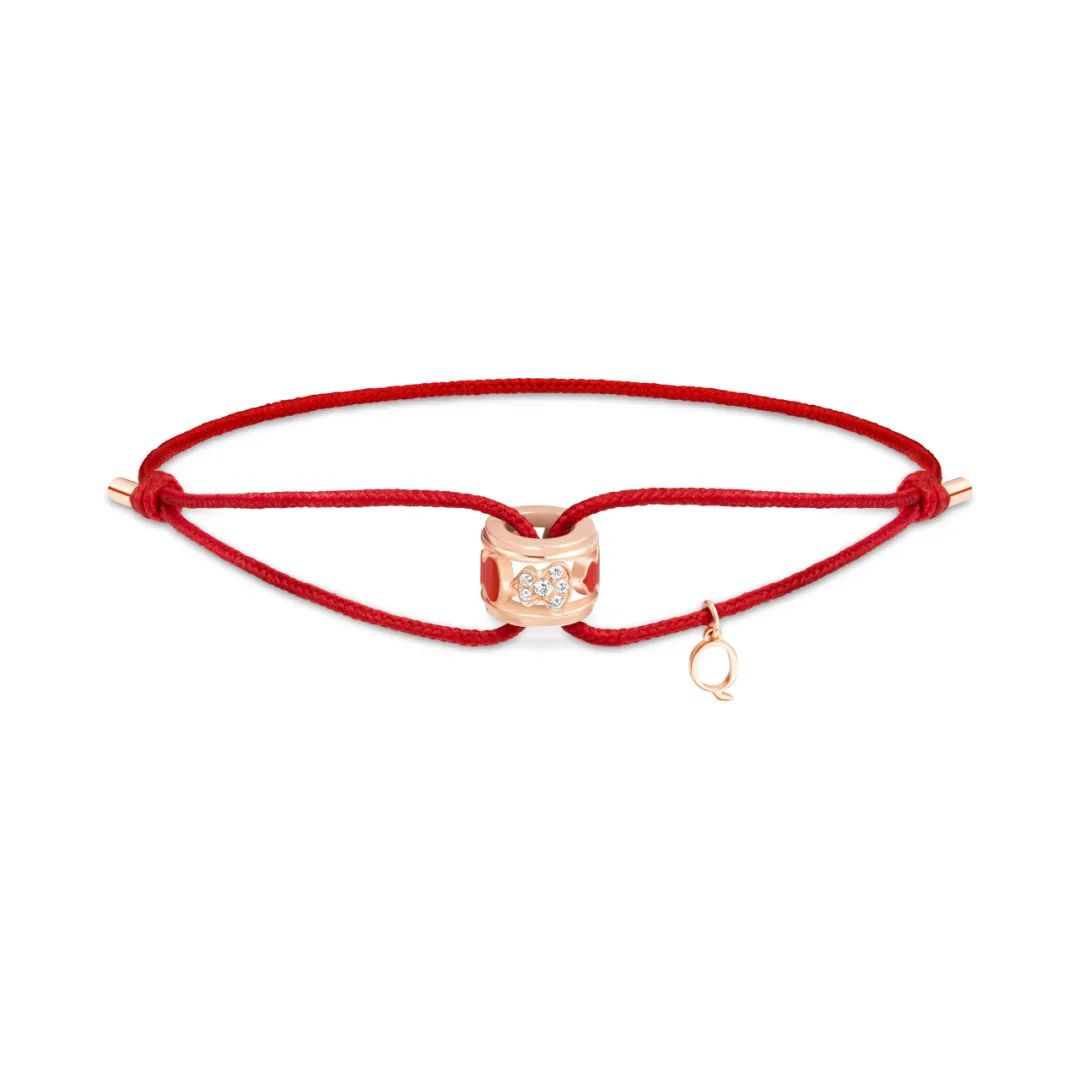 耳环亦采用18K玫瑰金及白金材质,首尾相连的Wulu象征好运的循环往复、去而复来;红绳手链,18K玫瑰金环形吊坠外缘采用阶梯式镂刻设计,镶嵌的钻石与红色HyCeram® 陶瓷Wulu相间排列,独特的3D轮廓设计赋予Wulu “福”源“滚滚”的美好寓意。红绳上代表着Qeelin的字母Q挂饰由18K玫瑰金制成,会随着手部的动作起伏而灵巧滑动,加持新一年摘星夺冠的永动能量。