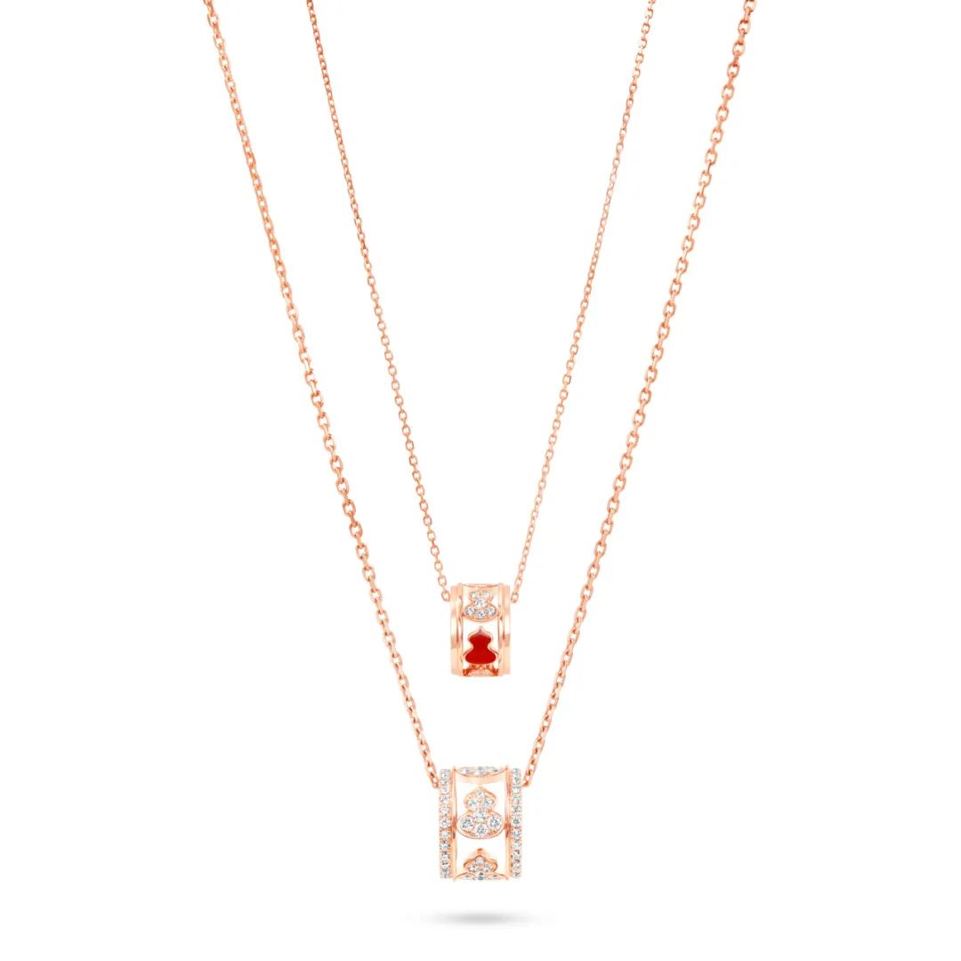 项链是本系列的主要作品,由18K玫瑰金与白金两种材质呈现。环形吊坠内嵌竖向排列的镶钻Wulu,其中一款还点缀了红色的 HyCeram®材质,精巧的镶嵌工艺带来风格上的点睛之笔,共同勾勒出极具辨识度的轮廓。
